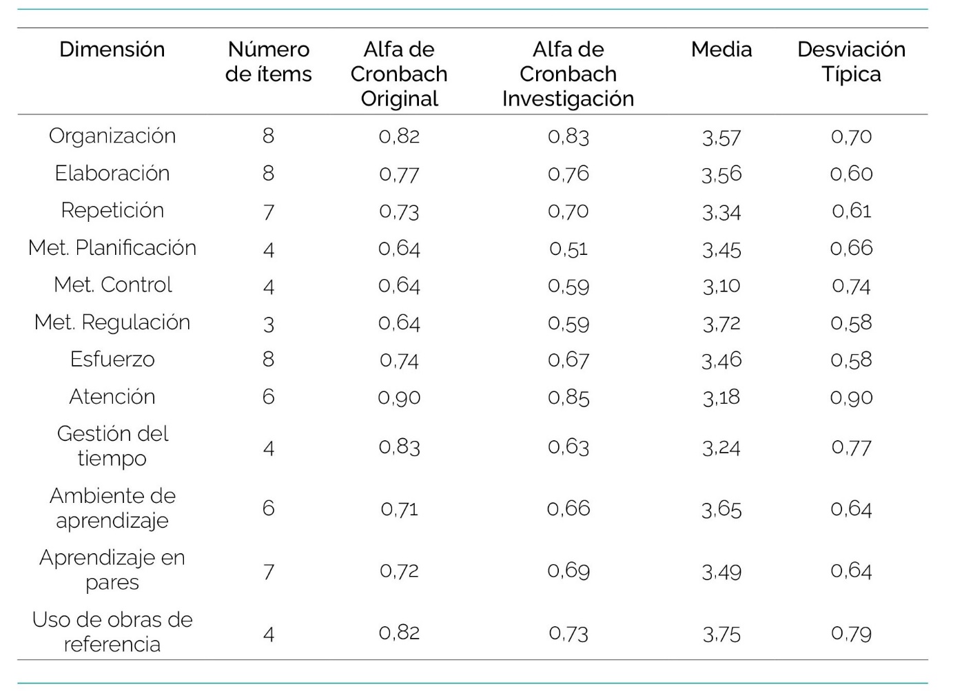 Entre los hallazgos obtenidos está, en primer lugar, que el cuestionario LIST tiene una confiabilidad muy aceptable en todos sus ítems y una confiabilidad aceptable en cinco de las dimensiones que evalúa, que son: organización, elaboración, repetición, atención y uso de obras de referencia. Esto arroja una señal positiva sobre la potencial utilidad del instrumento para futuros estudios sobre EA en el nivel medio superior.