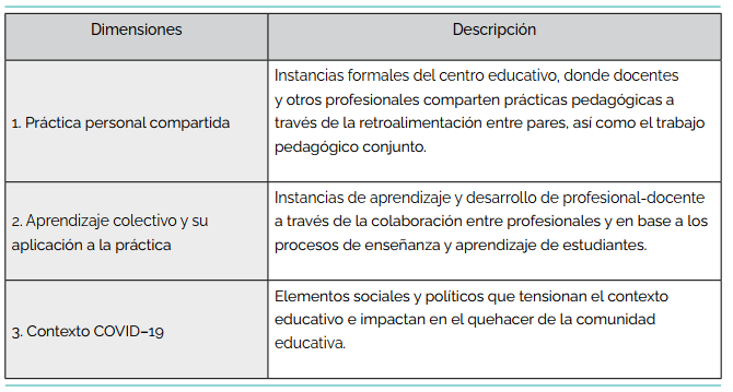 Dimensiones del aprendizaje colaborativo docente en Comunidades Profesionales de Aprendizaje en Chilei