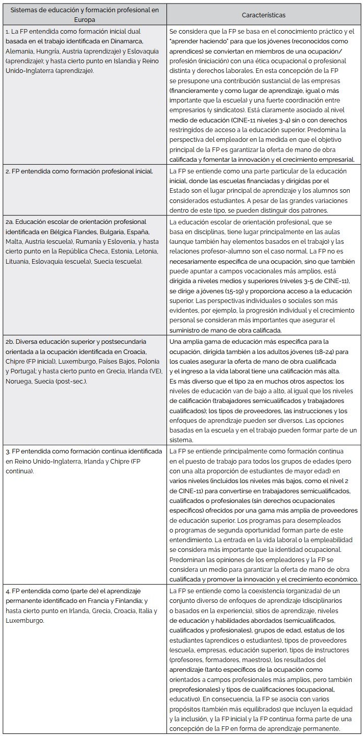 de los diferentes sistemas de FP prevalecientes en Europa