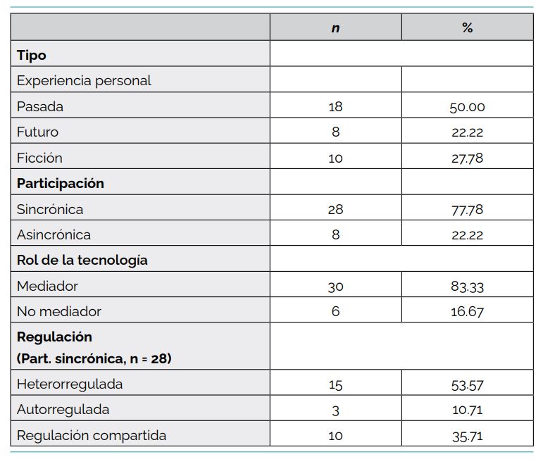 En relación con el grado de participación de los adultos en la narrativa infantil, la amplia mayoría de los relatos analizados son heterorregulados (Rosemberg et al., 2016). Este hallazgo muy probablemente se relacione con los desafíos que presenta este tipo de situaciones mediadas por tecnologías —complicaciones técnicas, dificultad para establecer atención conjunta, entre otros—. Por ello, tal como sostienen Ames et al. (2010), Ballagas et al. (2009) y Busch (2018), es fundamental que el adulto intervenga guiando al niño y motivando sus relatos de diversos modos. Este rol lo cumplen tanto los adultos presenciales, al guiar el comportamiento del niño en relación con la manipulación del dispositivo, como los virtuales, al colaborar con la construcción de la narrativa o señalar fallas de conectividad que obstaculizan la comprensión.