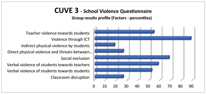 1. Through the Cuve3 questionnaire, will we be able to obtain data that can give us initial and approximate knowledge about the type of bullying among the components of the group to be studied? In what types of variables will they be broken down: student-student verbal violence, student-teacher verbal violence, physical violence, social exclusion, violence through technological means, classroom disruption, etc.?