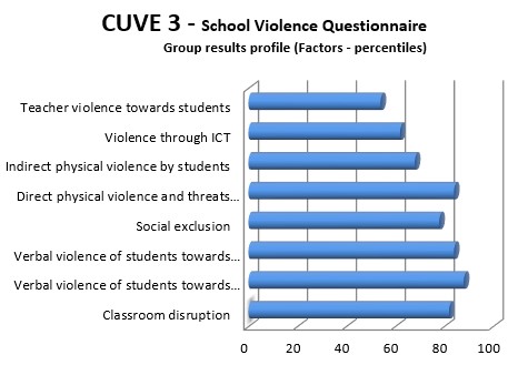 The School Violence Questionnaire -Cuve3- was administered to all the students in a group-classroom. The data was processed with the computer program of the Albor-Cohs group, which is part of the tool and its assessment.