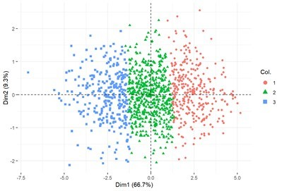 Nota. 1 = Clúster 1 (rojo), 2 = clúster 2 (verde), 3 = clúster 3 (celeste).
