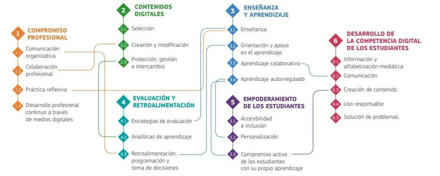 contempla seis áreas: profesional, contenidos digitales, enseñanza