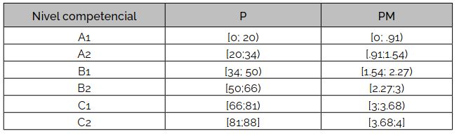 (experto), C1 (líder) y C2 (pionero), del más bajo nivel de