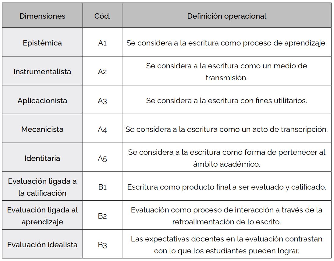 En la Tabla 2 se sistematizan las definiciones operacionales de las dimensiones presentes en la Tabla 1.