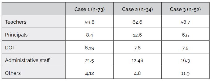 Note. Case 1 shows a greater degree of permanence of teachers in the institution compared to Case 2 and Case 3, as indicated in shaded.