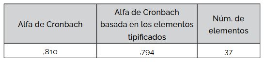 ítems, arrojó un resultado de 810 en la consistencia interna, lo