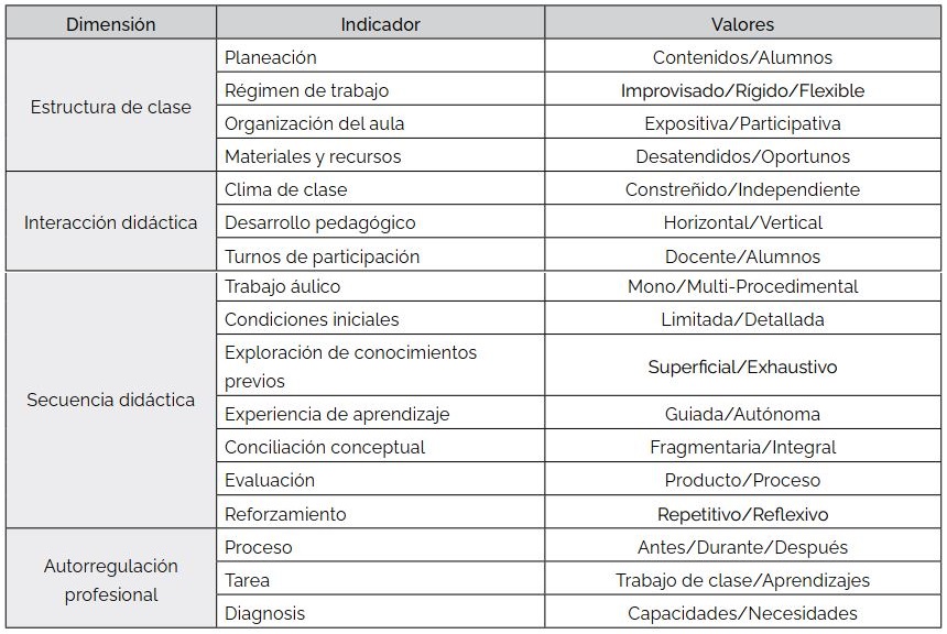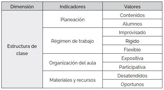 El diseño de la matriz epistémica se basa en la propuesta instrumental de Miranda (2007), ante la necesidad de especificar dimensiones, indicadores y valores que describan con mayor precisión el problema, además de garantizar el control de los valores y la situación concreta, tornándose en ejes de orientación y seguimiento de los resultados. Las Dimensiones son el ámbito de concreción y análisis de los PMD, afectados o limitados total o parcialmente durante la jornada escolar, acorde con su repercusión en el aprendizaje de la enseñanza. Los Indicadores concentran factores de la práctica docente con el efecto de dos o más valores, relativos a la interiorización de hábitos, actitudes, aptitudes, competencias y habilidades aprehendidos en la práctica, permitiendo la comprensión del progreso adquirido de la enseñanza.