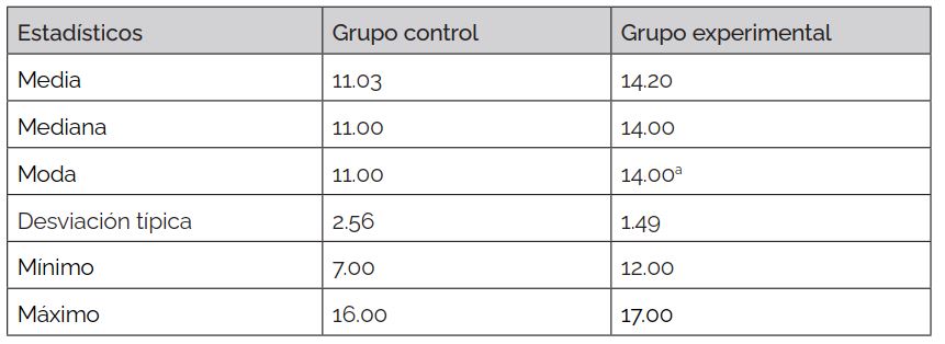 Nota. a: Existen varias modas. Se muestra el valor más pequeño.