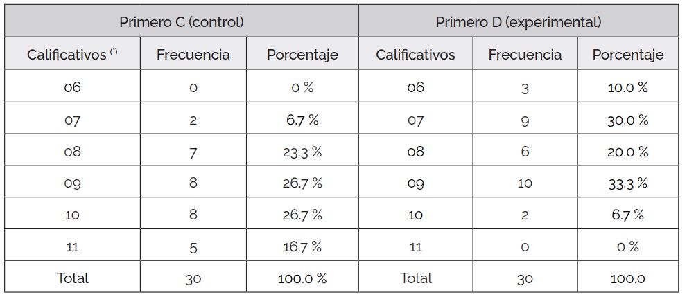 Posterior al trabajo con la estrategia Pólya con el A–M en el grupo experimental, se aplicó una prueba de salida, cuyos resultados se observan en la Tabla 2: