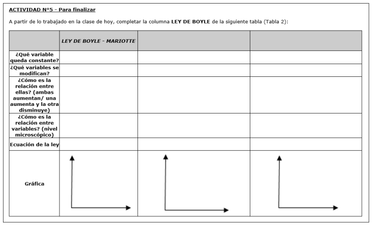 La tabla (Figura 2) formó parte de una secuencia didáctica que comprendió tres clases de la asignatura fisicoquímica en un segundo año de la educación secundaria, en un establecimiento educativo de la provincia de Buenos Aires, Argentina.