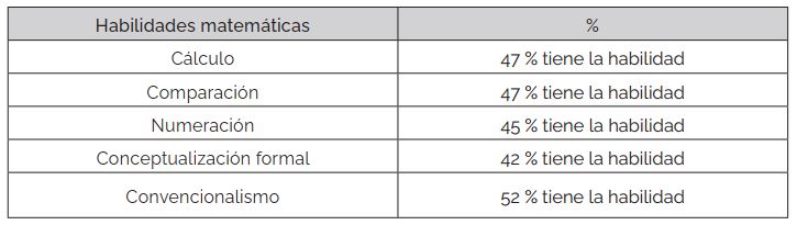 Por último, respecto a la habilidad de convencionalismo donde se observa una mejora de los estudiantes para comprender y aplicar la lecto-escritura de cantidades. Este resultado representa un avance en la comprensión de las reglas para expresar cantidades de manera adecuada y legible. Sin duda la Shagra ha permitido esta mejora al proporcionar actividades prácticas y experiencias concretas que facilitaron la comprensión y aplicación de las normas para la representación escrita de números y cantidades en diferentes contextos y situaciones.