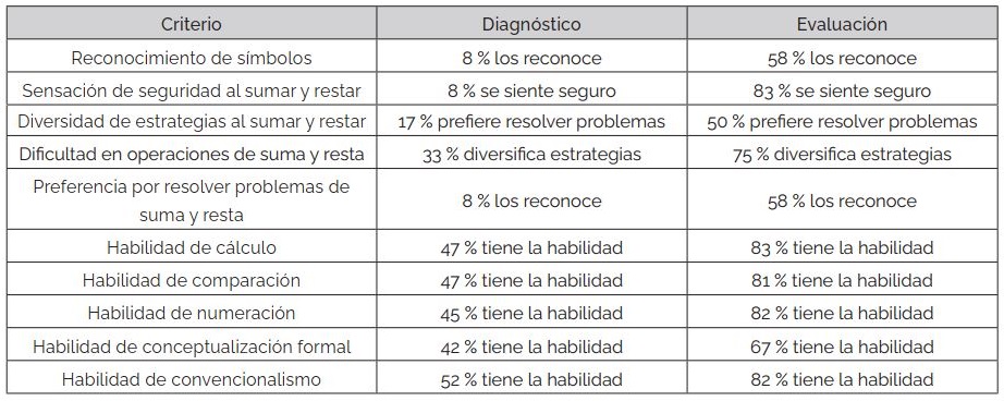 Los datos cualitativos se analizaron mediante técnicas de análisis de contenido, que permitieron identificar patrones emergentes y temas clave en las respuestas de los participantes. Por su parte, los datos cuantitativos se analizaron utilizando estadísticas descriptivas como frecuencias e Índice de Competencia Matemática para resumir las puntuaciones de las evaluaciones pre y post. Se compararon los resultados antes y después de la implementación de la estrategia pedagógica para evaluar su efectividad en el aprendizaje de suma y resta. Sin embargo, se ha de resaltar que los estudiantes pueden tener mejores resultados, aun aplicando estrategias convencionales de enseñanza, por ello se considera esta evaluación como una limitante de la investigación.
