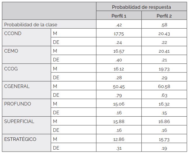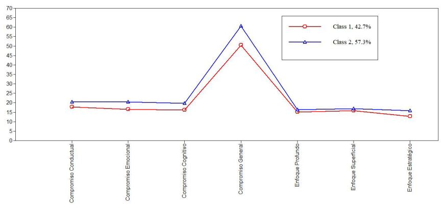 Con respecto al análisis de los perfiles de enfoques y compromiso académico este arrojó dos perfiles, uno de ellos agrupó estudiantes con mayores niveles de compromiso y enfoques, en comparación con el otro. Esto lleva a hipotetizar que el perfil con mayor nivel de enfoques y compromiso correspondería a un tipo más adaptativo, en comparación con el perfil de valores más bajos. En este sentido, el siguiente estudio —que analizó diferencias entre ambos perfiles según el rendimiento académico— verificó una diferencia estadísticamente significativa a favor de los alumnos con un perfil hipotetizado como adaptativo. Así, puede afirmarse que aquellos alumnos que presentan mejores resultados académicos serían aquellos que manifiestan un mayor compromiso conductual —apego a las normas—, cognitivo —empleo de pensamientos percepciones y estrategias— y emocional —control de emociones positivas y negativas— (Marôco et al., 2016; Ribeiro et al., 2019). A su vez, estos estudiantes también se caracterizarían por emplear todos los enfoques de aprendizaje —profundo superficial y estratégico—, lo que les facilitaría adaptarse a los distintos contextos, aprendiendo del empleo de procesos cognitivos elementales como también a partir la memorización, o bien superiores como la elaboración conceptual, sin perder de vista el uso de estrategias de aprendizaje que les permita alcanzar a los alumnos sus metas de aprendizaje (Tait et al., 1998).