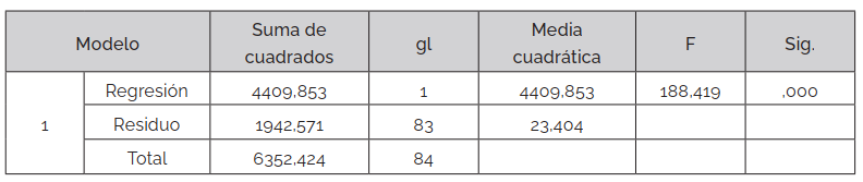 muy fuerte (R = 0,833). Además, el análisis ANOVA y el análisis
