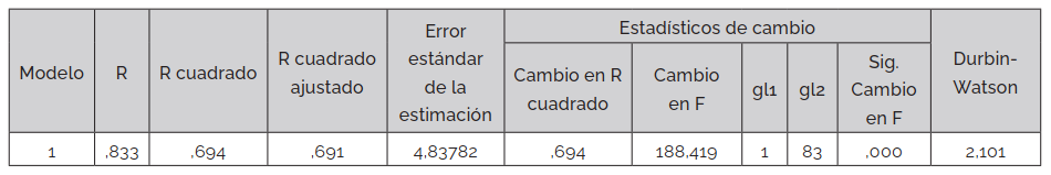 coeficiente de correlación múltiple (R = 0,833) muestra