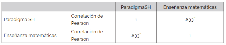 La Tabla 2 muestra los resultados de una correlación positiva muy fuerte, con un valor de r = 0,833. Este hallazgo indica que a medida que aumenta la adopción del paradigma socio cognitivo humanista, también se percibe una mejora en la calidad de la enseñanza de las matemáticas.