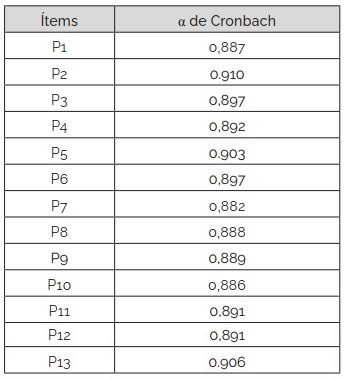 El cuestionario fue validado a través de juicio de expertos, quienes evaluaron la pertinencia y claridad de los ítems de la escala Likert como de las preguntas de la sección cualitativa. La escala Likert utilizada en el estudio presentó un coeficiente alfa de Cronbach de 0,901, lo que indica un nivel suficiente de consistencia interna. Este resultado sugiere que los ítems del instrumento mantienen una coherencia interna entre sí. Incluso, los valores individuales de cada ítem oscilaron entre 0,882 y 0,910, lo que confirma la robustez del instrumento. Hernández-Sampieri & Mendoza (2018) señalan que los valores del coeficiente alfa de Cronbach cercanos o superiores a 0,80 son considerados de alta confiabilidad. En otras palabras, los coeficientes obtenidos respaldan la validez interna de la escala Likert, lo que evidencia un instrumento pertinente para medir percepciones del estudiantado.