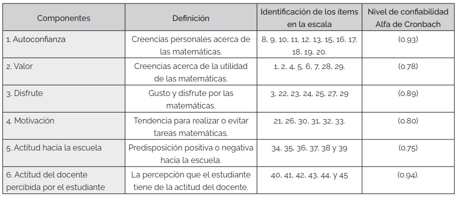 Partiendo de lo antes expuesto, se abordan las definiciones de los factores que componen las actitudes hacia las matemáticas: