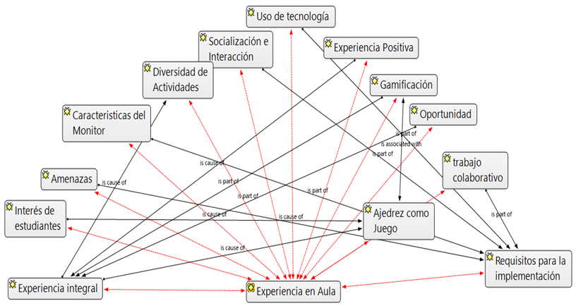 Esta categoría fue establecida a partir de la dimensión 1, “Características de la implementación de la experiencia de ajedrez en aula”, identificando percepciones en torno a las actividades desarrolladas en aula, las interacciones dentro del equipo educativo y estudiantes, así como las acciones ejecutadas por el especialista en ajedrez (ver Figura 3).