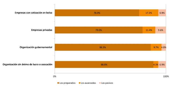 Son las empresas privadas, especialmente con acciones en la bolsa de valores, las que demuestran estar más avanzadas en esta temática (17,2%), en tanto que las organizaciones del Tercer Sector son las que demuestran tener más información, aunque no implementan una aplicación de la misma en sus rutinas de comunicación (88,8%). Esa realidad es comprensible si nos atenemos a que ese tipo de organizaciones, en la mayoría de los casos, no posee una estructura consolidada de comunicación ni recursos para equiparla de manera adecuada.