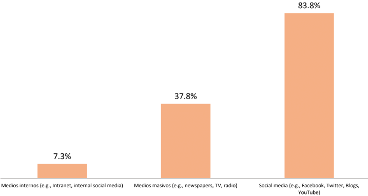 1 Los resultados forman parte de la edición 2018-2019 del estudio Latin American Communication Monitor que promueve la European Public Relations Education and Research Asociation (EUPRERA) con el apoyo de la Asociación de Directivos de Comunicación (DIRCOM) y la plataforma FUNDACOM y el patrocinio de la Associação Brasileira de Comunicação Empresarial (ABERJE), Brasil, y la University of Oregon - School of Journalism and Communication, Estados Unidos. El estudio fue presentado en diversos foros académicos y profesionales. Véase: http://latincommunicationmonitor.com/.