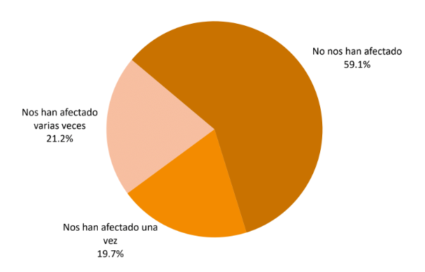 De los entrevistados, el 40,9% afirma que sus organizaciones ya fueron afectadas por noticias falsas (por lo menos una vez). Y si se observa por país, los que tienen mayor impacto de fake news son: República Dominicana (47,7%), Colombia (32,9%) y Costa Rica (32,6%).