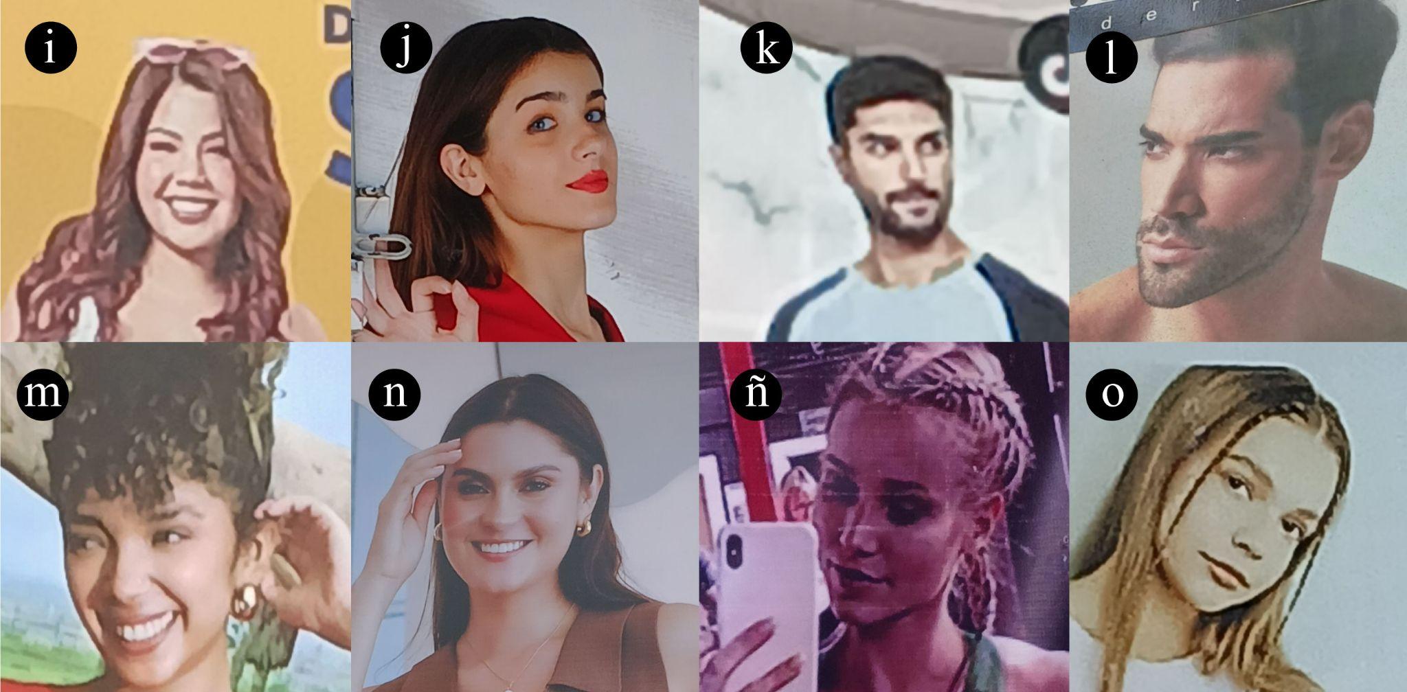 En el consumo popular, el rostro-conformismo (ver Figura i, n y o de la Imagen 2), no se limita a una mirada concentrada y rígida, sino que también puede transmitir una sensación de adecuación respecto a una situación específica. En este caso, el rostro adopta una expresión patémica más sutil y susurrante, como una risa contenida o una mirada ligeramente distendida, una gestualidad que ya no implica una invitación frivolizada –como en el caso del rostro-concentración– sino más bien una actitud acorde con un entorno urbano y con la jovialidad cotidiana del consumo. Es un rostro que ríe, pero sin estridencias. Por contraste, el rostro-mantenimiento (Imagen m y ñ de la Imagen 2) retoma la mirada esquiva del rostro-esfuerzo, aunque con una diferencia clave: en lugar de sostener una expresión tensa que evita al espectador, el rostro-distinción construye un discurso de naturalidad, relajo y compostura fresca. La mirada se desvía de manera artificial, no como un gesto de evasión forzada, sino como parte de una actuación que simula haber sido capturada espontáneamente en la cotidianidad. Este gesto se complementa con una sonrisa leve o una mueca casual, reforzando la idea de un consumo que ya no es un objeto de deseo externo, sino algo incorporado a la cotidianidad, naturalizado. El rostro-mantenimiento, al buscar representar una apariencia de cotidianidad en la imagen publicitaria vernácula, se emplea con mayor frecuencia en los rostros de bebés, especialmente en marcas de ropa infantil. En estos casos, el infante, al no ser un sujeto de consumo que llame a otros a la compra, no puede sostener un rostro concentrado, lo que explica el uso de este rostro para este sector en la lógica publicitaria. Es importante señalar que, en la publicidad popular recopilada, únicamente se representan niños caucásicos, mientras que no se incluyen niños mestizos o negros.