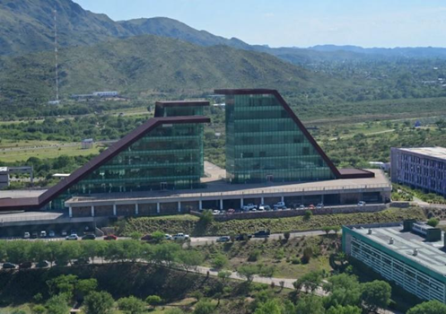 La lógica espectacular tiende al borramiento de las prácticas y al olvido de las condiciones conflictuales que las atraviesan. En su despliegue, desconoce el conflicto y asienta su movimiento de edificación urbana sobre la producción de pseudo-integraciones. En este sentido, cabe preguntarse: ¿qué vínculo guarda una pirámide escalonada iluminada como un casino de Las Vegas con la geografía y la historia de una ciudad intermedia argentina? En este último caso, el centro administrativo del poder gubernamental —denominado Terrazas del Portezuelo (Imagen 6)— parece condensar las aspiraciones de esas proyecciones urbanas motorizadas por la lógica del espectáculo. Sus luces, su monumentalidad y la singularidad de su forma evocan los grandes panteones faraónicos, símbolos de la proyección del poder soberano sobre el territorio.